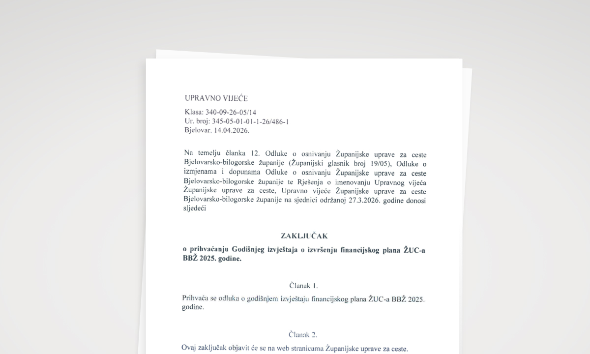 Informacije i dokumentiPlanovi,programi i izvještaji Godišnji izvještaj o izvršenju financijskog plana za 2025.g. 17. travnja 2026. 3 Objavljen je Godišnji izvještaj o izvršenju financijskog plana za 2025.g. Preuzmite dokument (PDF)